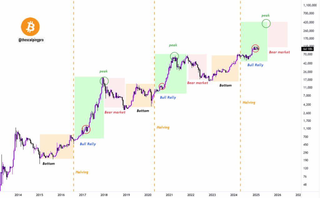 Il 5 dicembre del 2024 Bitcoin supera per la prima volta il valore di 100 mila US dollari per poi raggiungere i 100 mila euro (105k $) il 16 dicembre 2024. Quali sono le prospettive ora che ha raggiunto questo incredibile traguardo? Un inevitabile collasso delle quotazioni o l’inizio di una bullrun favolosa? Da mesi ormai, da quando cioè i primi ETF Bitcoin sono stati emessi sui mercati finanziari tradizionali, stiamo assistendo a una corsa all’accaparramento dei BTC disponibili sul mercato che hanno pure subito un dimezzamento della produzione dovuto all’halving del 18 aprile 2024.